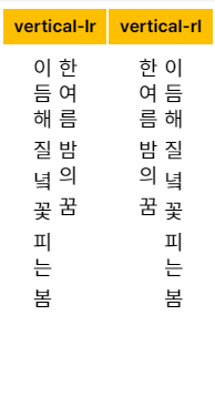 텍스트를 세로로 타이핑하는 방법으로 쉬운 방법인 CSS에 존재하는 writing-mode 속성을 소개하겠습니다.
