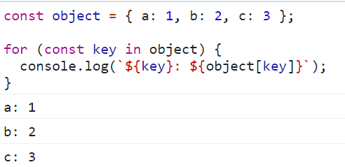 for in 문은 객체의 모든 문자열로 된 키를 반복하여 열거합니다.
